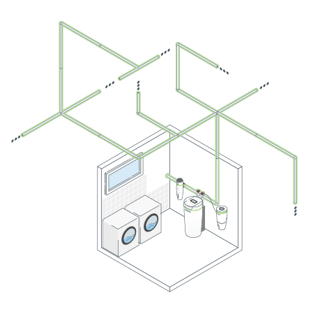 Der Hauswasseranschluss befindet sich bei den meisten Häusern im Keller. Von hier aus wird das Trinkwasser im ganzen Haus verteilt. Deshalb ist dies der optimale Ort zum Aufbereiten des gesamten Wassers im Hauswasserkreislauf.