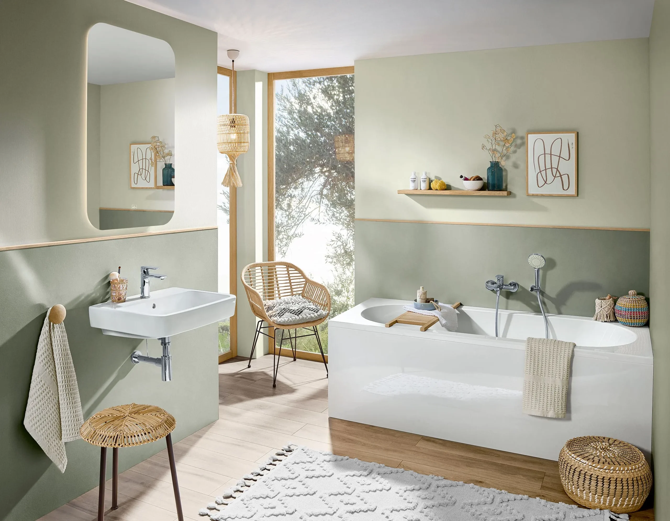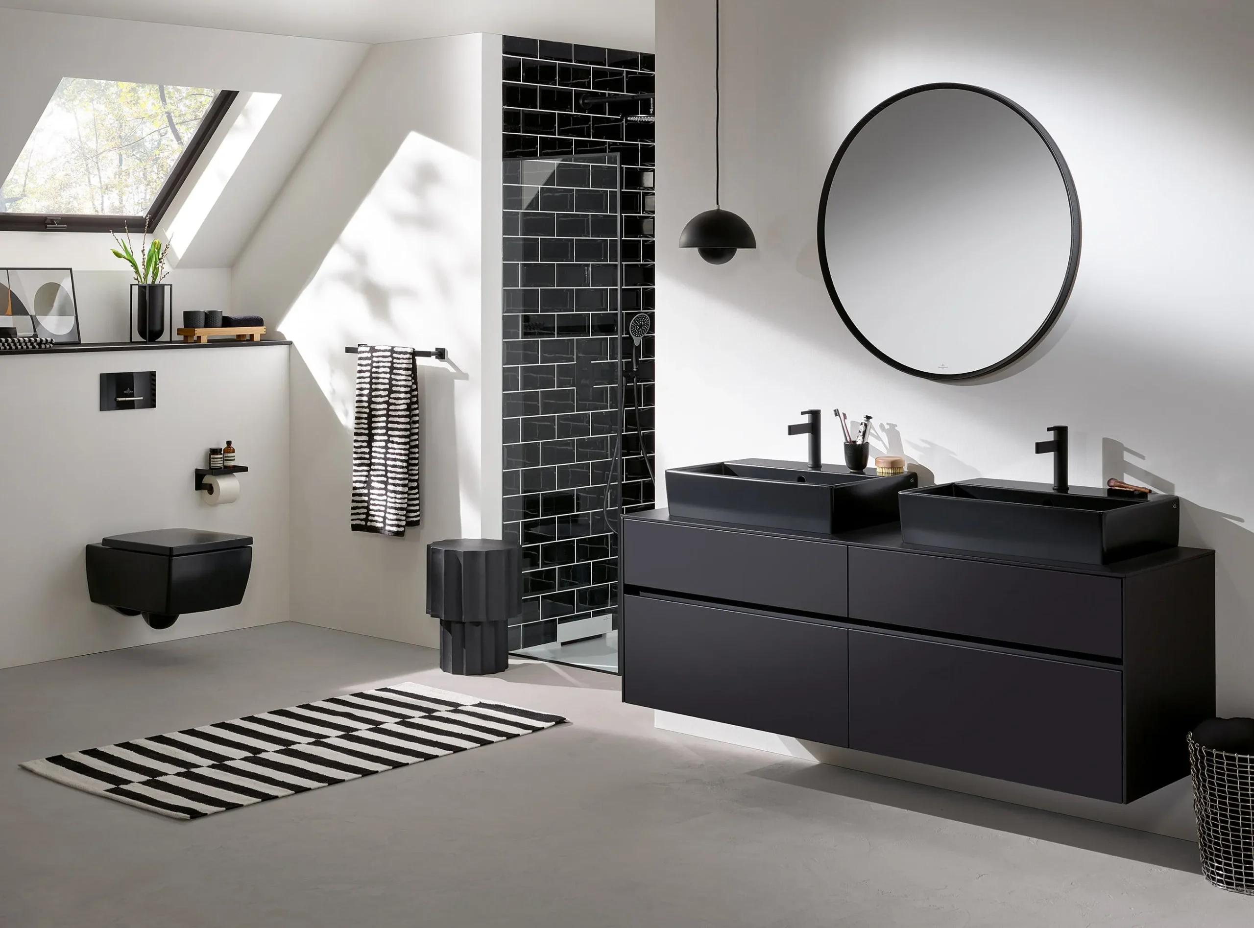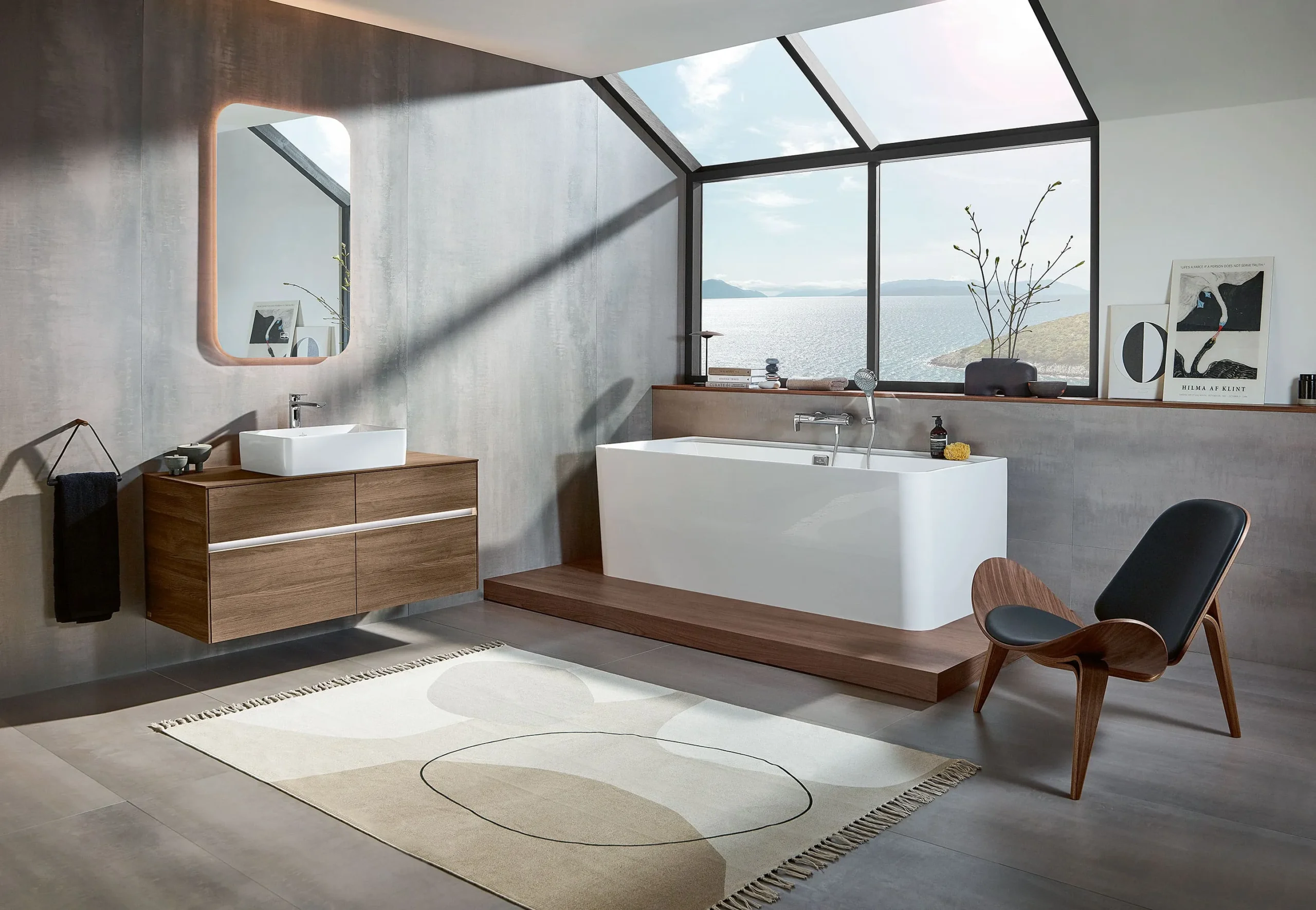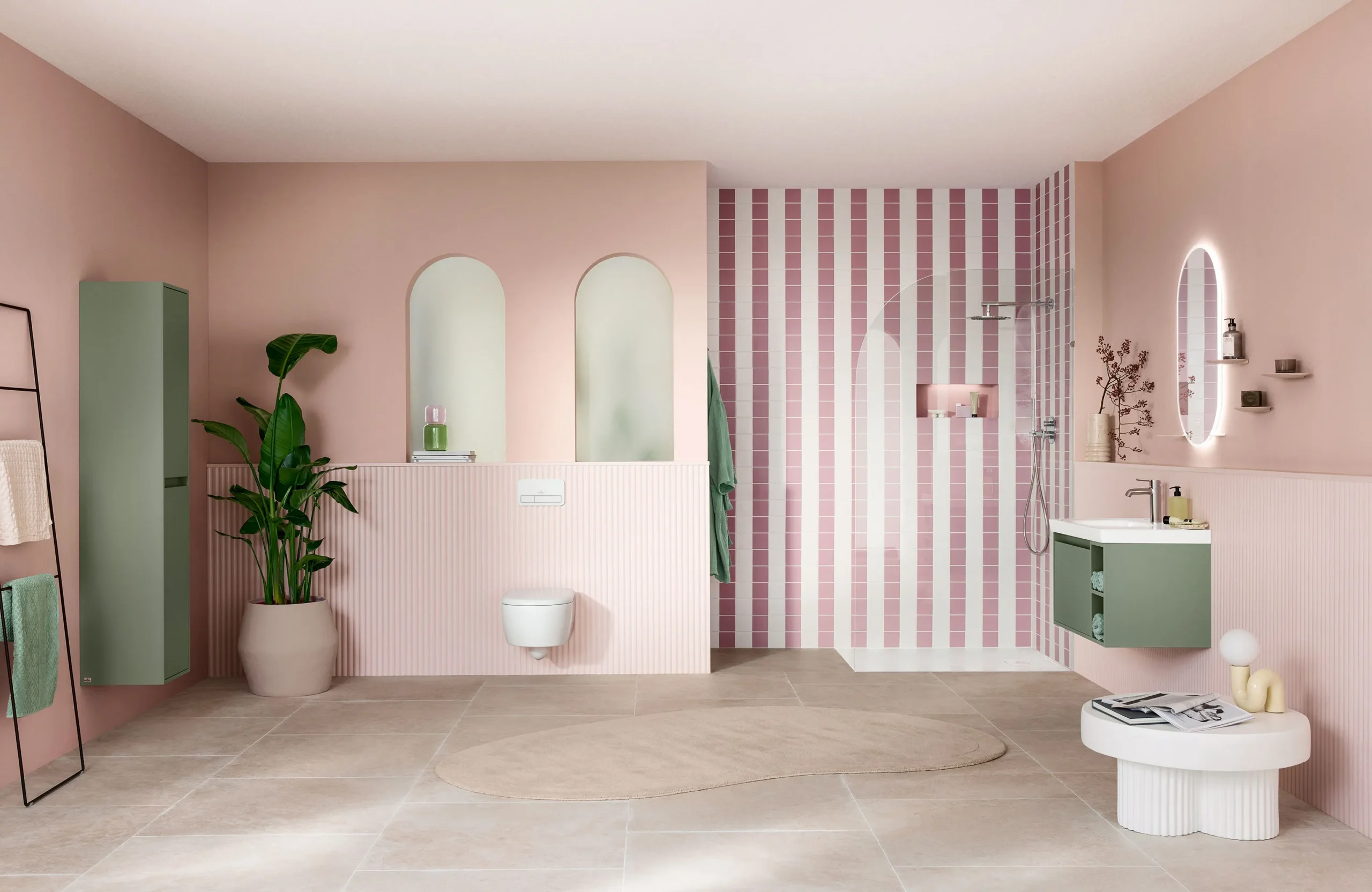 Vielseitige Badgestaltung durch Produktvielfalt und geometrische Formen.